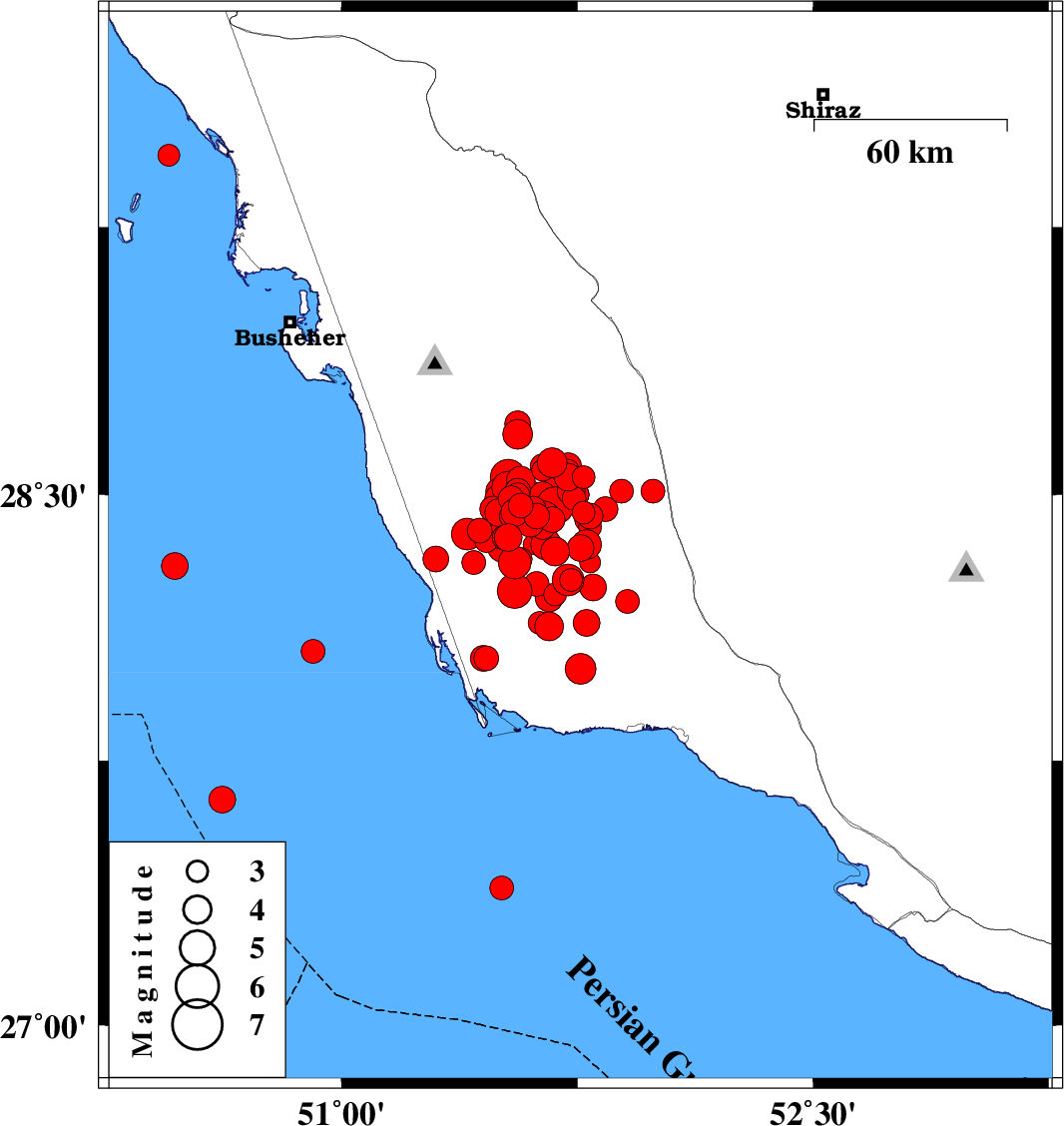 2013/04/10 19:41:57.5 00:11:57.5 28.4551.5530 ML:3.9 Bushehr Province, 28 km South-East of Khormog