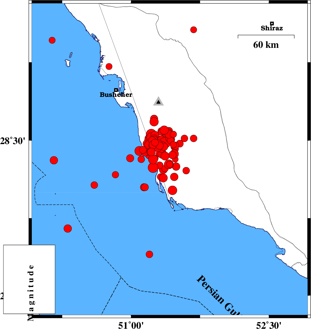 2013/04/10 19:41:57.5 00:11:57.5 28.4551.5530 ML:3.9 Bushehr Province, 28 km South-East of Khormog