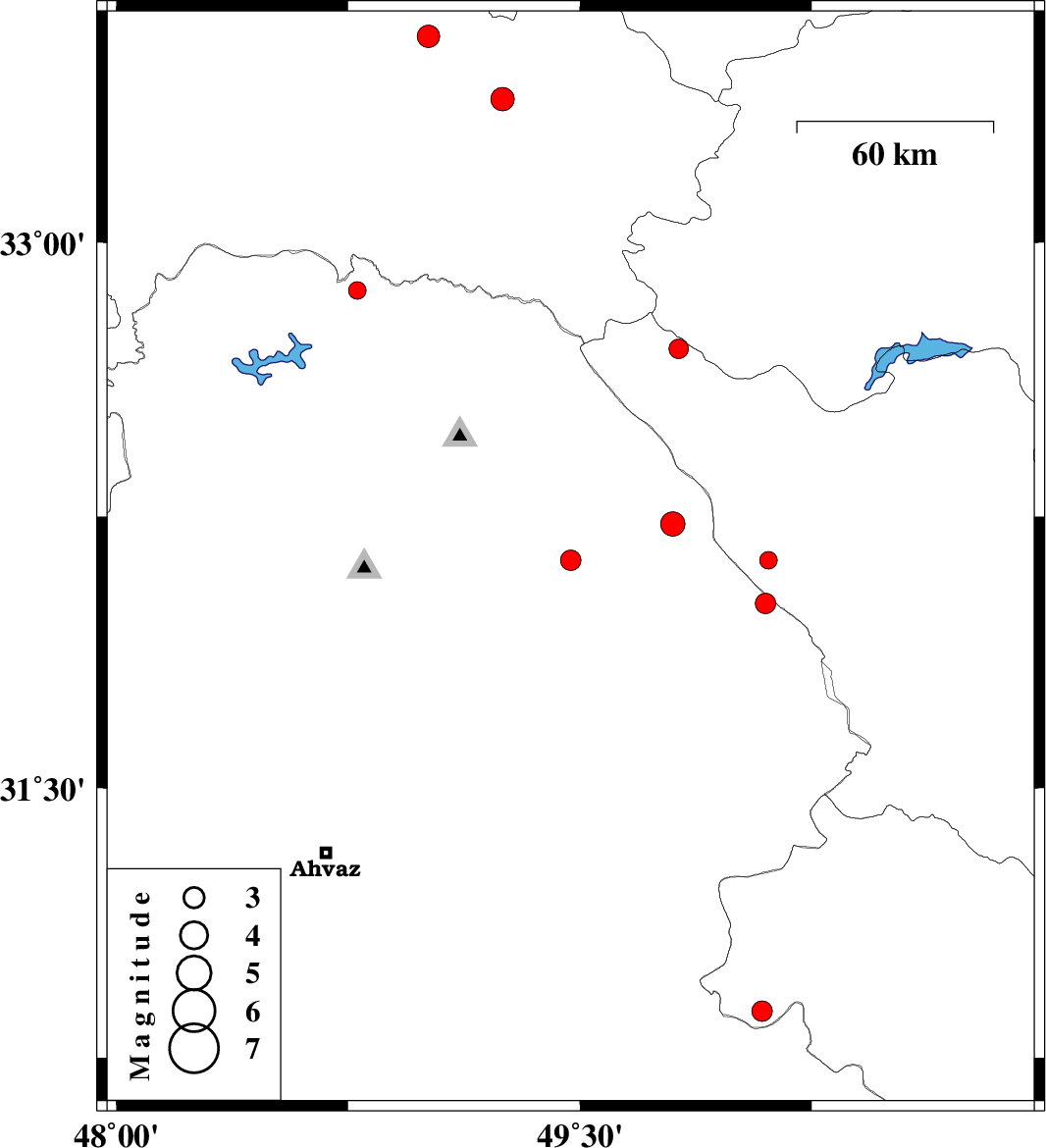 | 2013/03/27 | 15:53:04.2 | 20:23:04.2 | 32.01 | 50.1 | 41 | ML:3 | Khoozestan Province, 29 km North-East of Izeh | ||