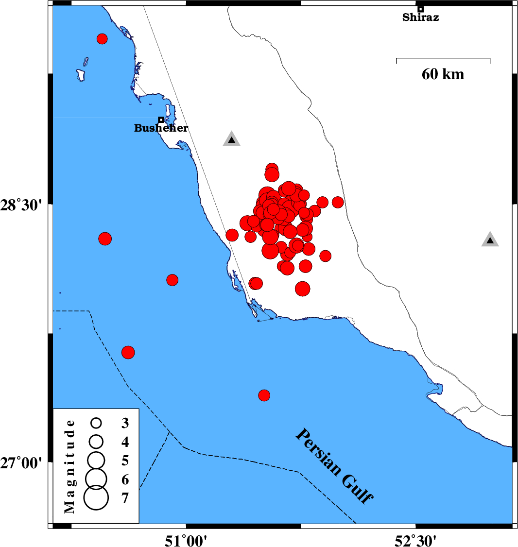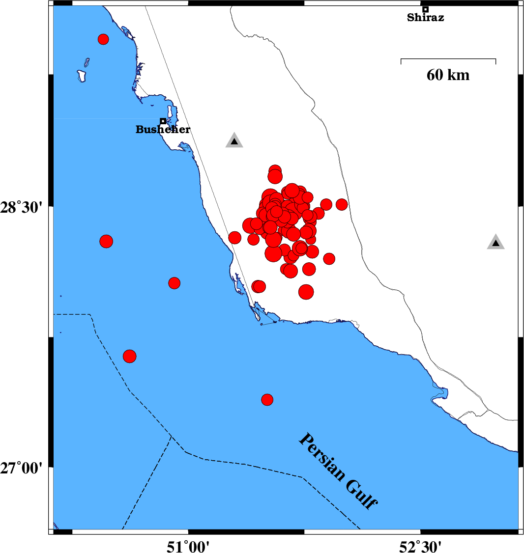 2013/04/10 19:41:57.5 00:11:57.5 28.4551.5530 ML:3.9 Bushehr Province, 28 km South-East of Khormog