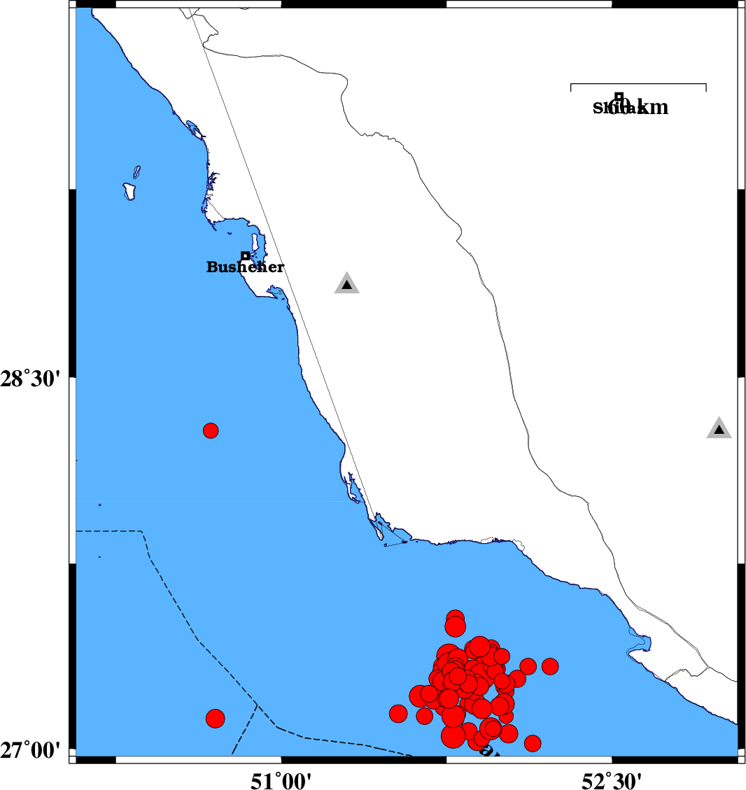 2013/04/03 15:35:12.6 20:05:12.6 29.4550.4518 ML:3.1 Persian Gulf, 15 km South of Bandar-e genaveh