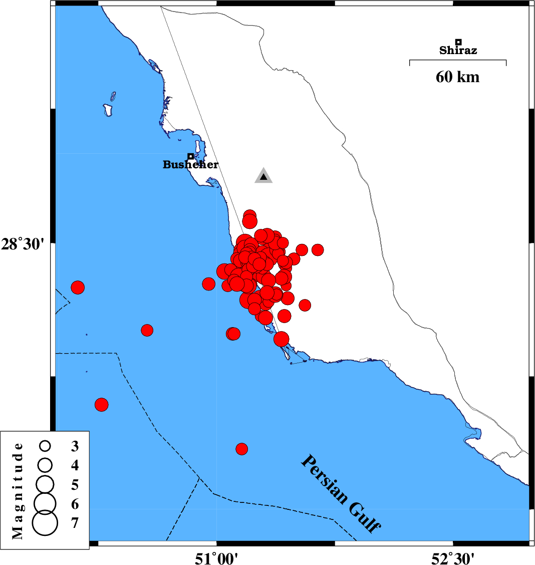 2013/04/09 15:26:10.8 19:56:10.8 28.4651.8436 ML:3.5 Bushehr Province, 50 km South-East of Khormog