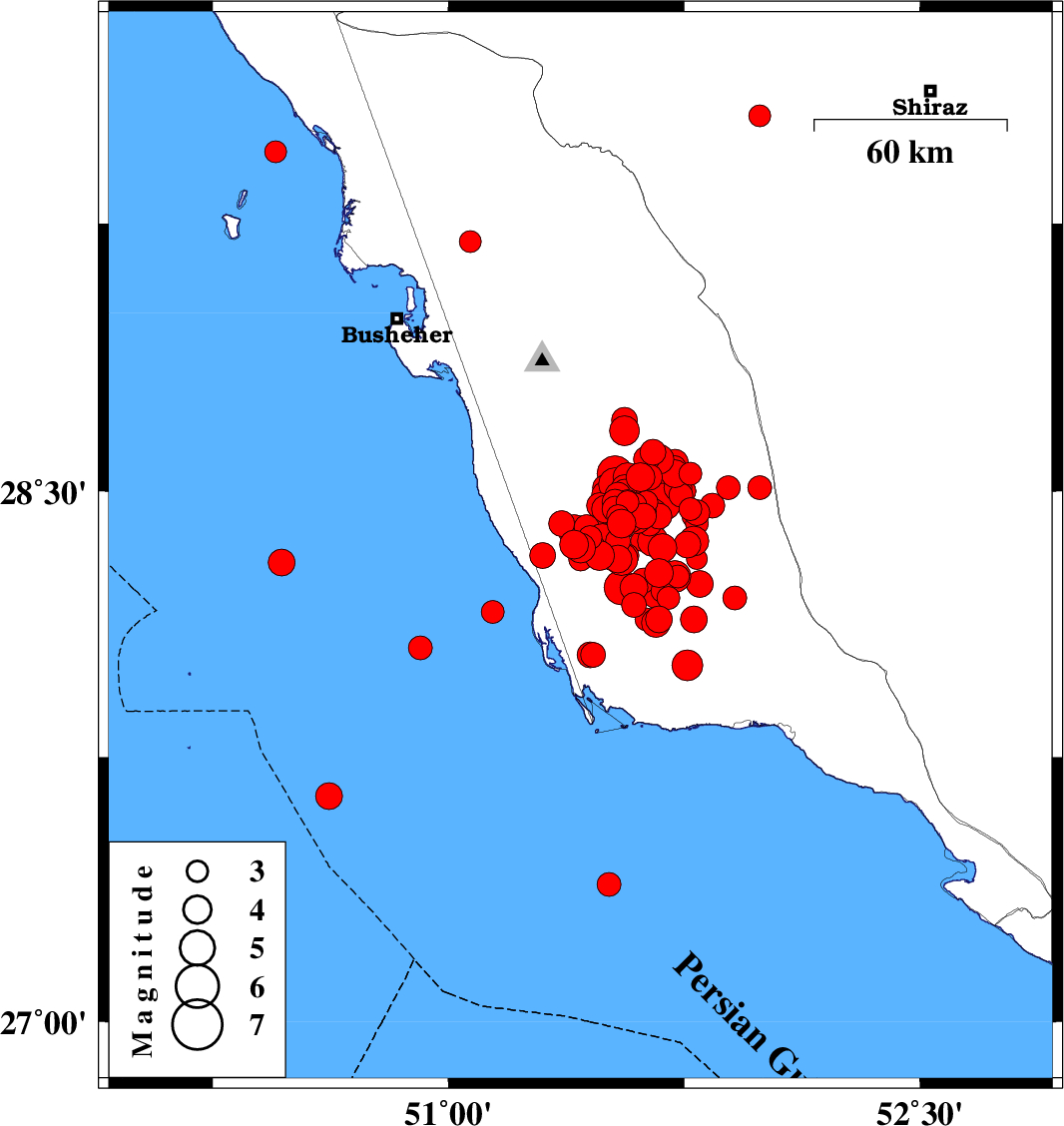 2013/04/12 05:11:29.8 09:41:29.8 28.3551.433 ML:4.1 Bushehr Province, 34 km South of Khormog