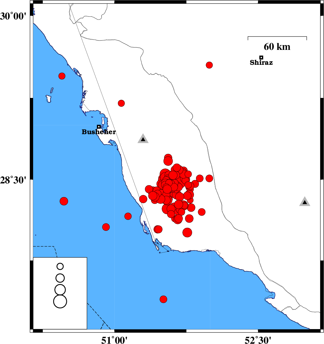 2013/04/10 19:41:57.5 00:11:57.5 28.4551.5530 ML:3.9 Bushehr Province, 28 km South-East of Khormog