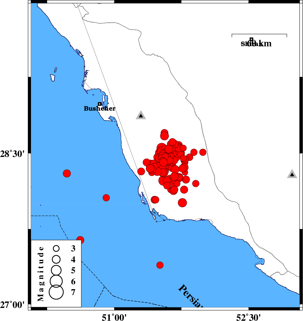 2013/04/10 19:41:57.5 00:11:57.5 28.4551.5530 ML:3.9 Bushehr Province, 28 km South-East of Khormog