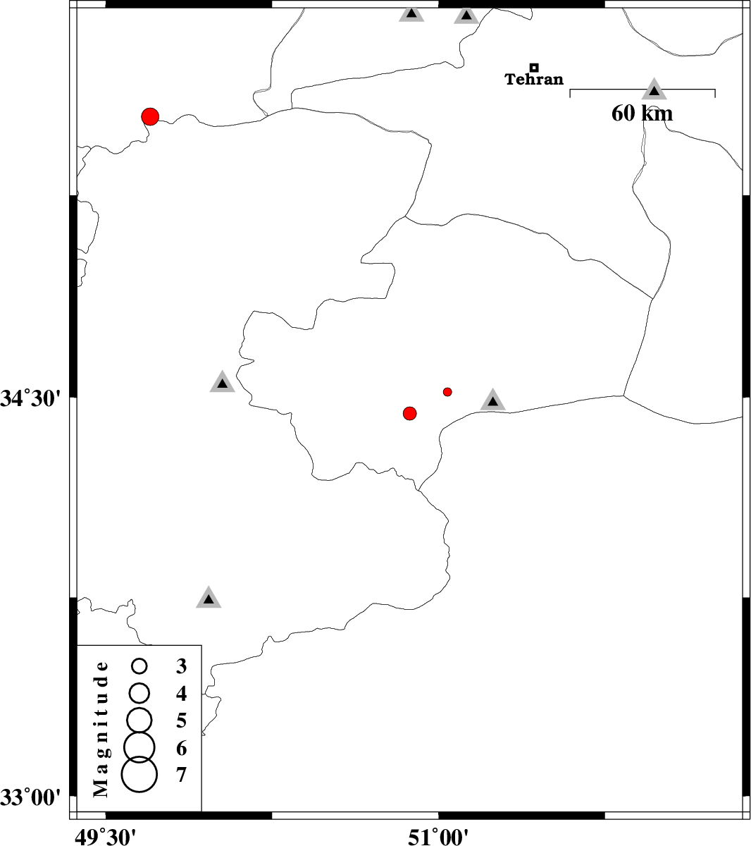 | 2013/04/12 | 21:01:54.6 | 01:31:54.6 | 34.44 | 50.87 | 33 | ML:2.7 | Qom Province, 23 km South of Qom | ||