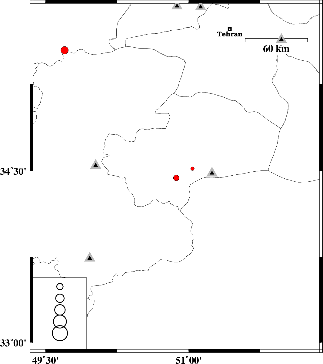 2013/04/12 | 21:01:54.6 | 01:31:54.6 | 34.44 | 50.87 | 33 | ML:2.7 | Qom Province, 23 km South of Qom | ||