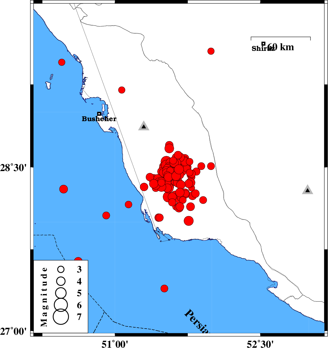 2013/04/10 19:41:57.5 00:11:57.5 28.4551.5530 ML:3.9 Bushehr Province, 28 km South-East of Khormog