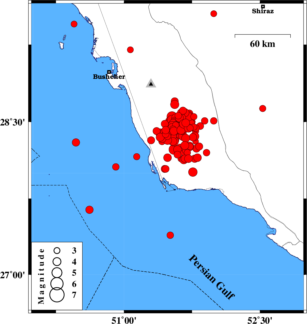2013/04/12 05:11:29.8 09:41:29.8 28.3551.433 ML:4.1 Bushehr Province, 34 km South of Khormog