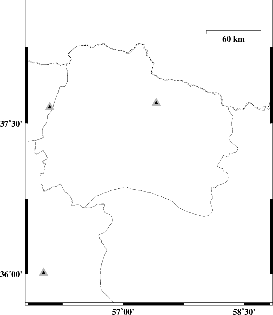 | 2013/04/16 | 14:33:15.4 | 19:03:15.4 | 37.21 | 57.32 | 14 | ML:2.5 | Khorasan(north) Province, 29 km South of Bojnurd | ||