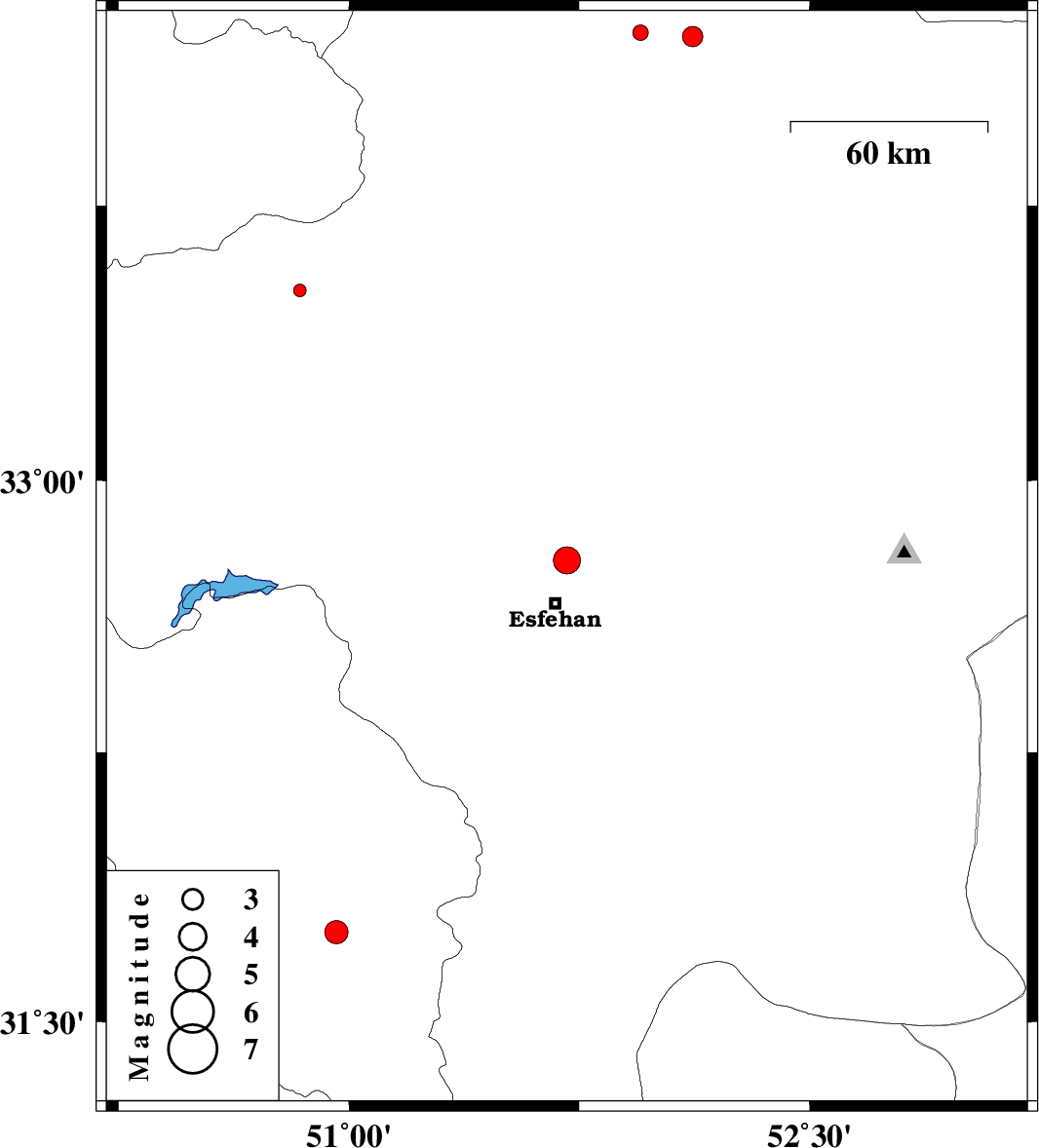 | 2013/04/19 | 20:22:34.6 | 00:52:34.6 | 32.78 | 51.71 | 14 | ML:4 | Esfahan Province, 13 km North of Esfahan | ||