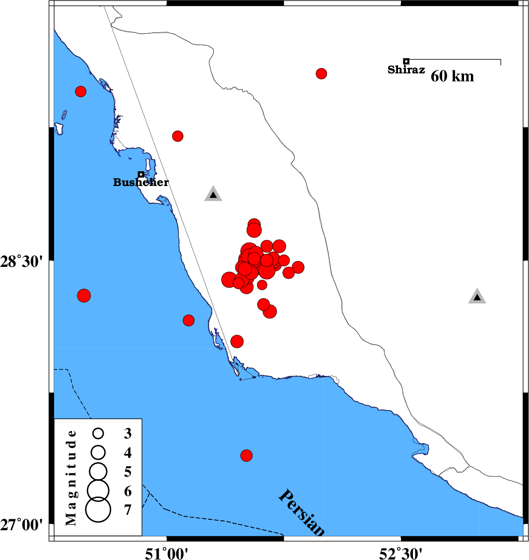 2013/04/09 15:26:10.8 19:56:10.8 28.4651.8436 ML:3.5 Bushehr Province, 50 km South-East of Khormog