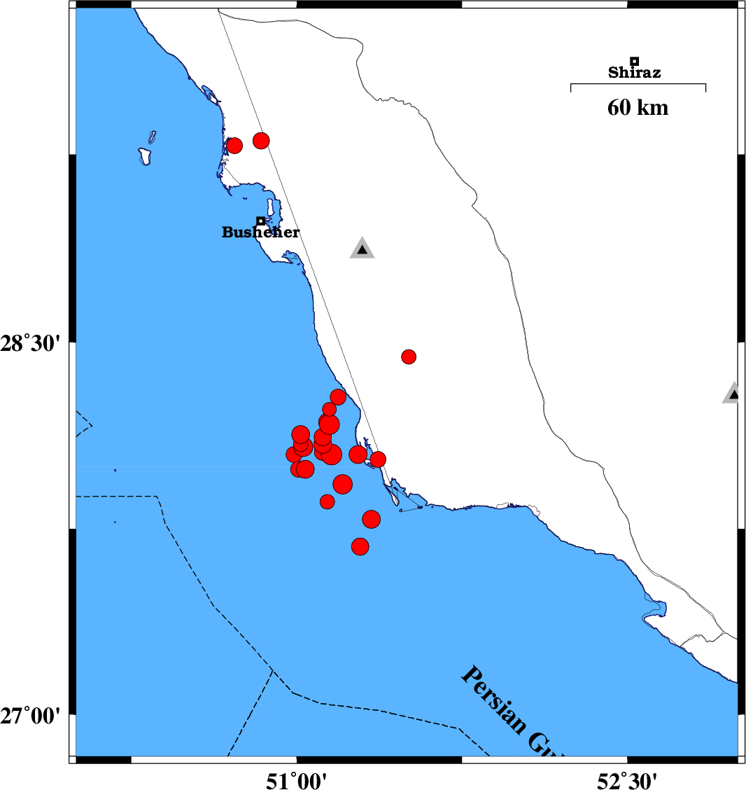 2013/04/19 09:41:18.5 14:11:18.5 28.3951.4544 ML:3.2 Bushehr Province, 30 km South of Khormog