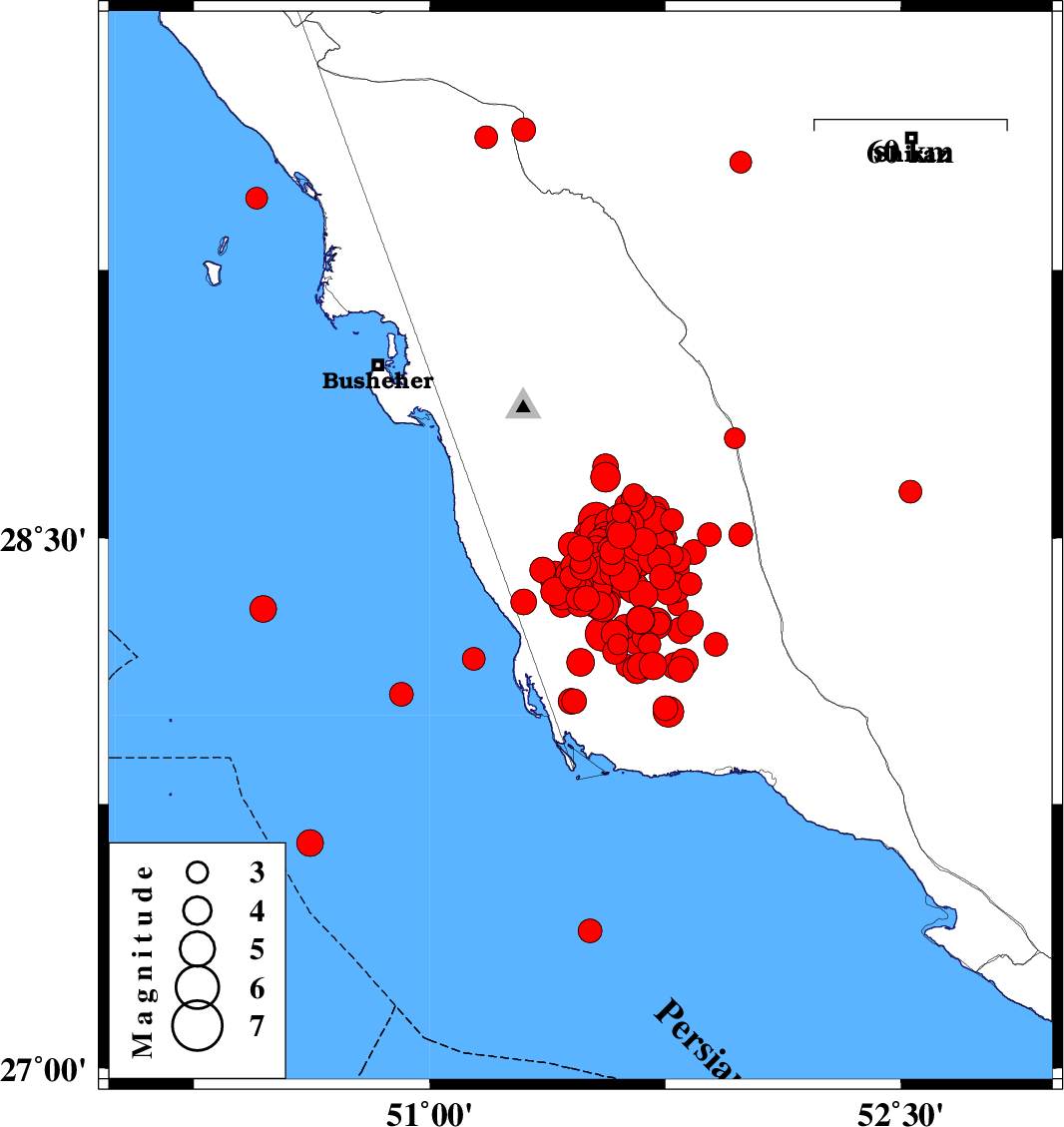 2013/04/10 19:41:57.5 00:11:57.5 28.4551.5530 ML:3.9 Bushehr Province, 28 km South-East of Khormog