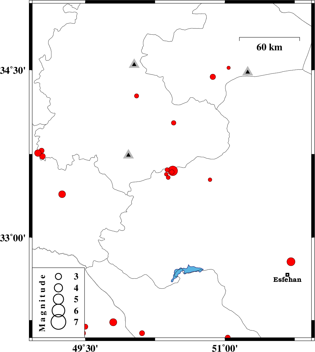 2013/04/24 03:08:25.3 07:38:25.3 33.650.449 ML:4.6 Esfahan Province, 21 km North-East of Golpayegan