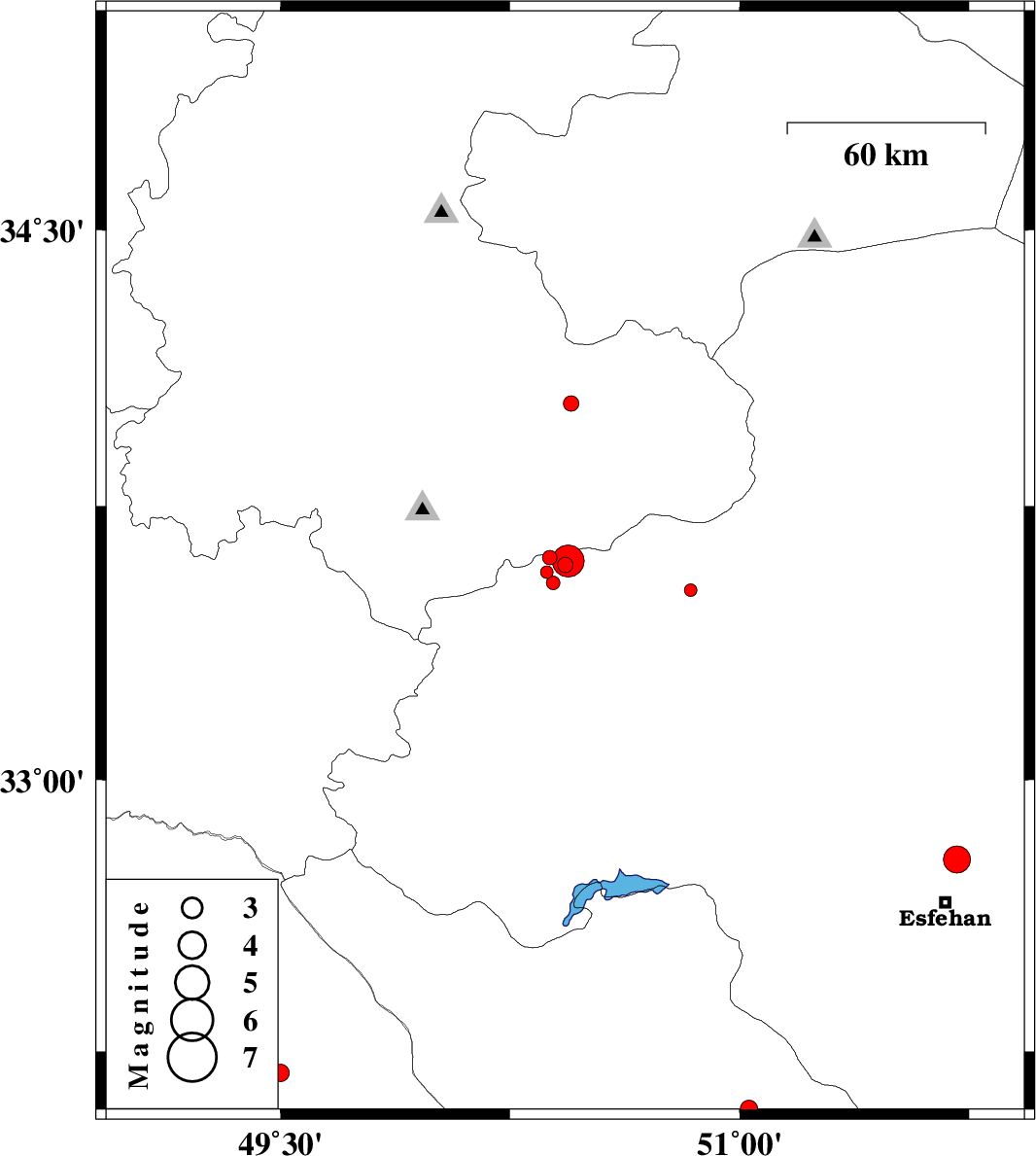 2013/04/24 03:08:25.3 07:38:25.3 33.650.449 ML:4.6 Esfahan Province, 21 km North-East of Golpayegan