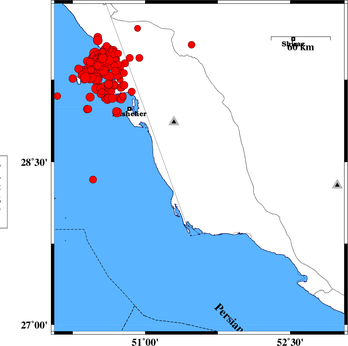 2013/04/11 02:43:01.1 07:13:01.1 28.5951.6317 ML:3.7 Bushehr Province, 26 km East of Khormog