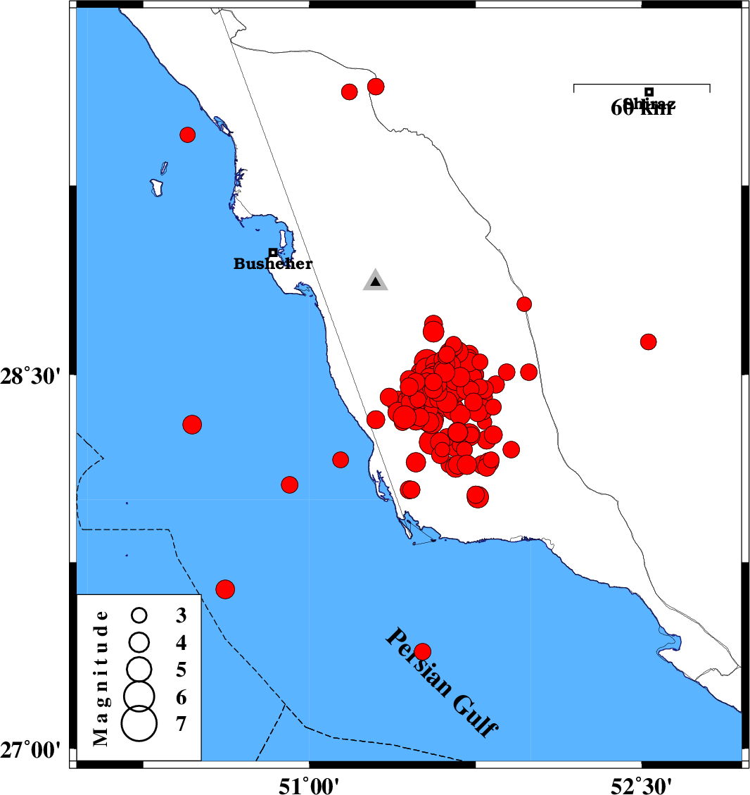 2013/04/10 19:41:57.5 00:11:57.5 28.4551.5530 ML:3.9 Bushehr Province, 28 km South-East of Khormog