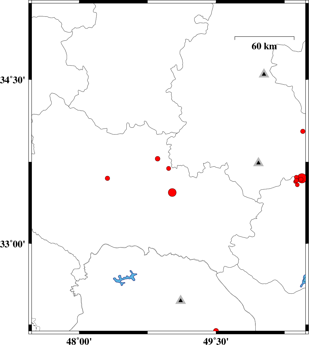2013/04/20 | 03:14:51.8 | 07:44:51.8 | 33.78 | 48.86 | 37 | ML:2.4 | Lorestan Province, 16 km South-East of Borujerd |