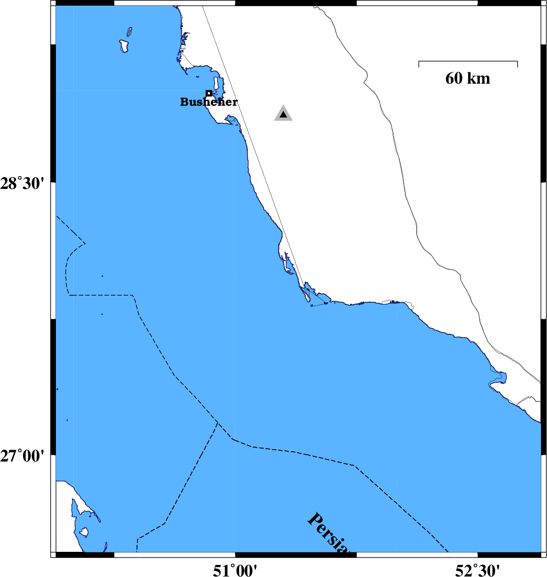 2013/04/27 | 11:07:17.8 | 15:37:17.8 | 27.96 | 51.39 | 28 | ML:3.6 | Persian Gulf, 77 km South of Khormog | ||