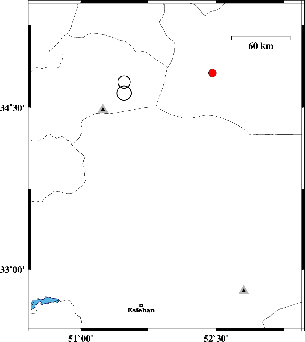 2013/04/10 | 04:01:41.6 | 08:31:41.6 | 33.9 | 53.24 | 14 | ML:3 | Esfahan Province, 116 km North-East of Nain | ||