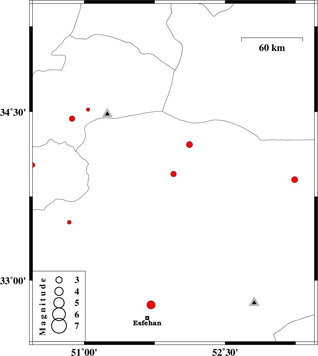 | 2013/04/19 | 20:22:34.6 | 00:52:34.6 | 32.78 | 51.71 | 14 | ML:4 | Esfahan Province, 13 km North of Esfahan | ||