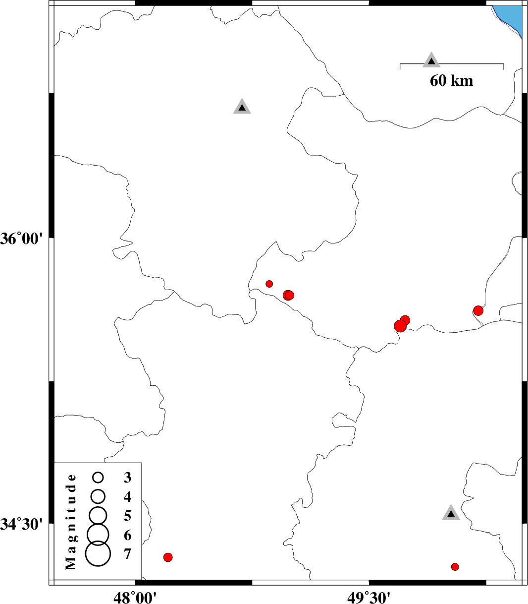 2013/04/03 | 22:31:42.9 | 03:01:42.9 | 34.27 | 50.05 | 10 | ML:2.1 | Markazi Province, 29 km South of Ashtiyan | ||