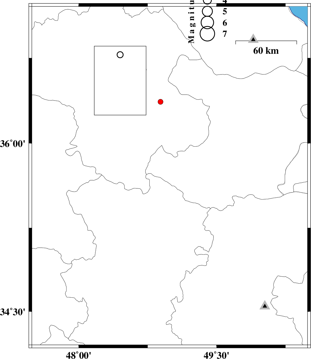 | 2013/04/29 | 05:56:04.8 | 10:26:04.8 | 35.7 | 48.98 | 14 | ML:2.9 | Ghazvin Province, 36 km North of Razan | ||