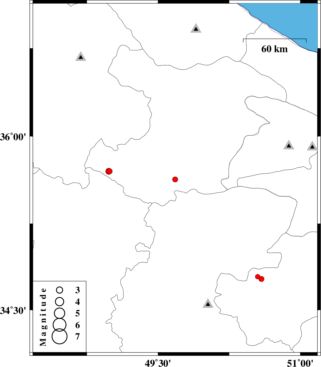 | 2013/04/29 | 06:29:35.7 | 10:59:35.7 | 35.7 | 48.99 | 14 | ML:2.6 | Ghazvin Province, 36 km North of Razan | ||