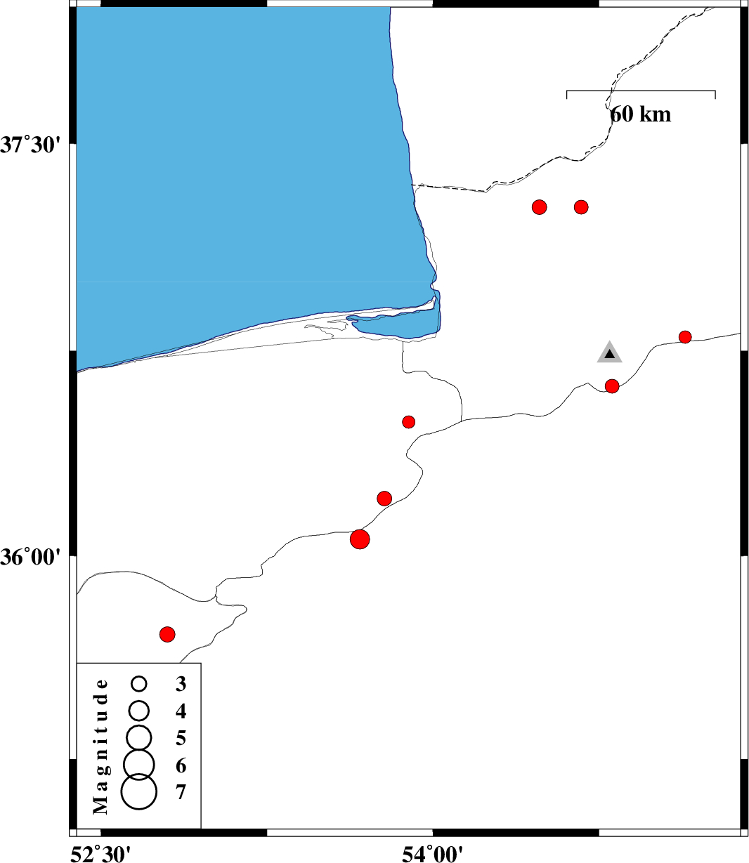 | 2013/04/05 | 06:35:07.4 | 11:05:07.4 | 36.8 | 55.14 | 46 | ML:2.6 | Golestan Province, 23 km South of Ramian |