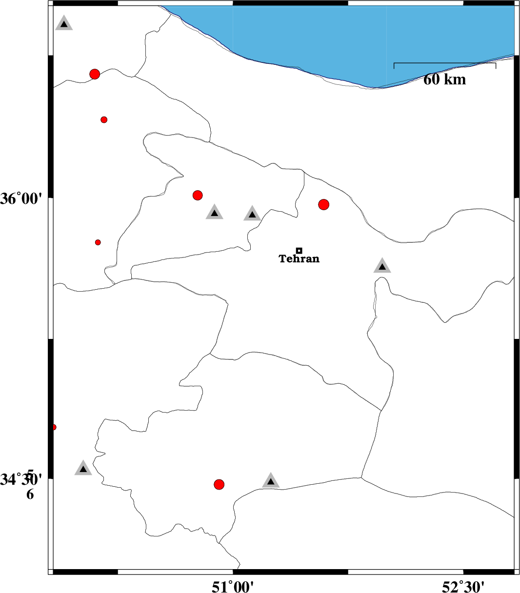 2013/05/02 | 10:47:36.5 | 15:17:36.5 | 35.6 | 50.22 | 36 | ML:1.8 | Tehran Province, 23 km South-East of Buinzara | ||