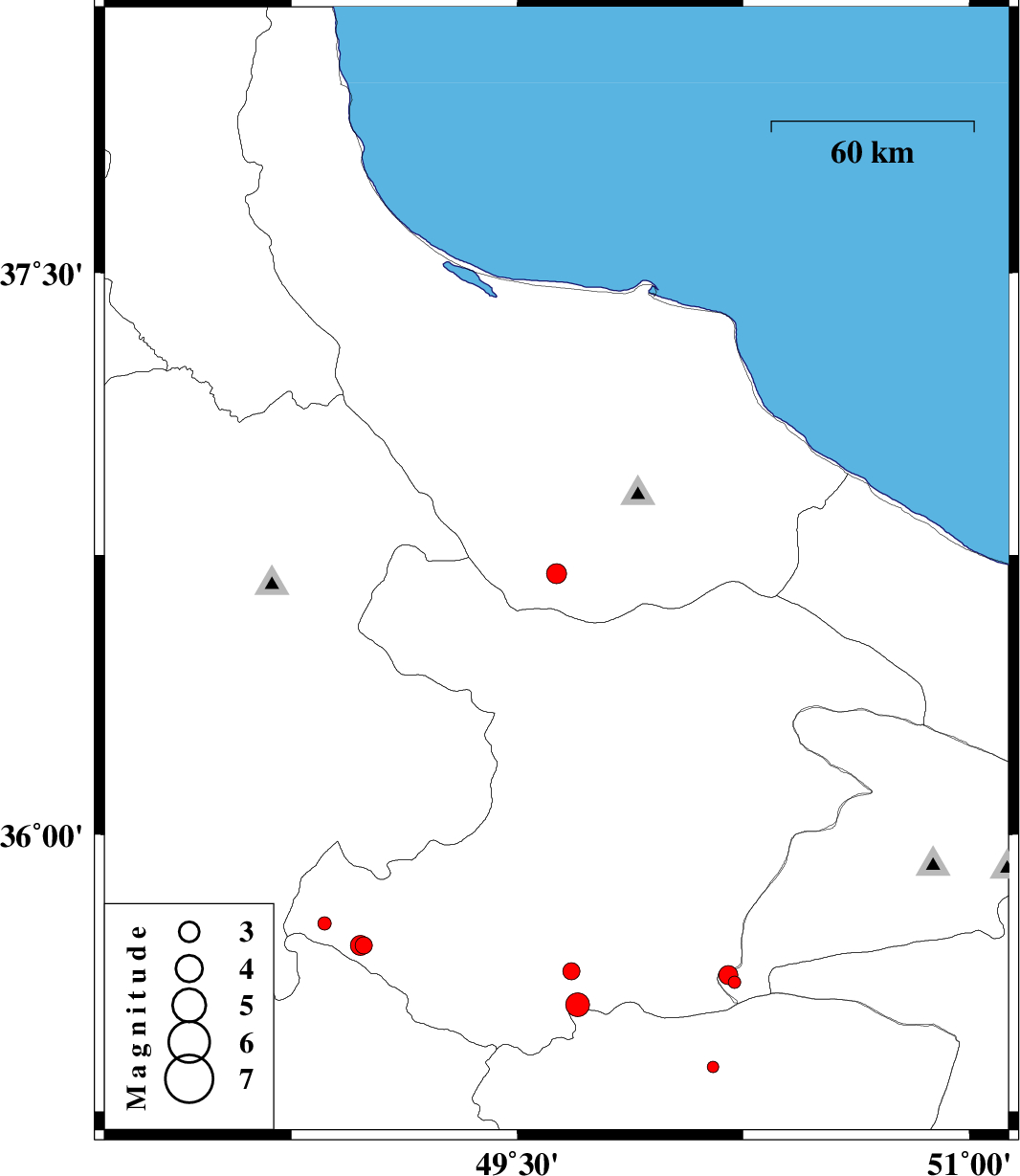 | 2013/05/03 | 15:08:27.5 | 19:38:27.5 | 36.7 | 49.63 | 15 | ML:2.9 | Gilan Province, 23 km South-East of Rudbar | ||