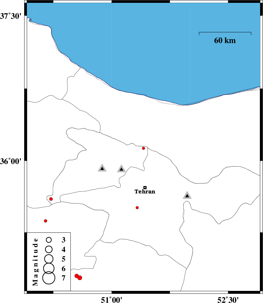 | 2013/05/04 | 00:45:51.1 | 05:15:51.1 | 36.13 | 51.41 | 15 | ML:1.6 | Tehran Province, 37 km North of Tajrish | ||