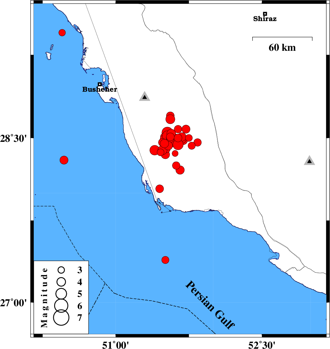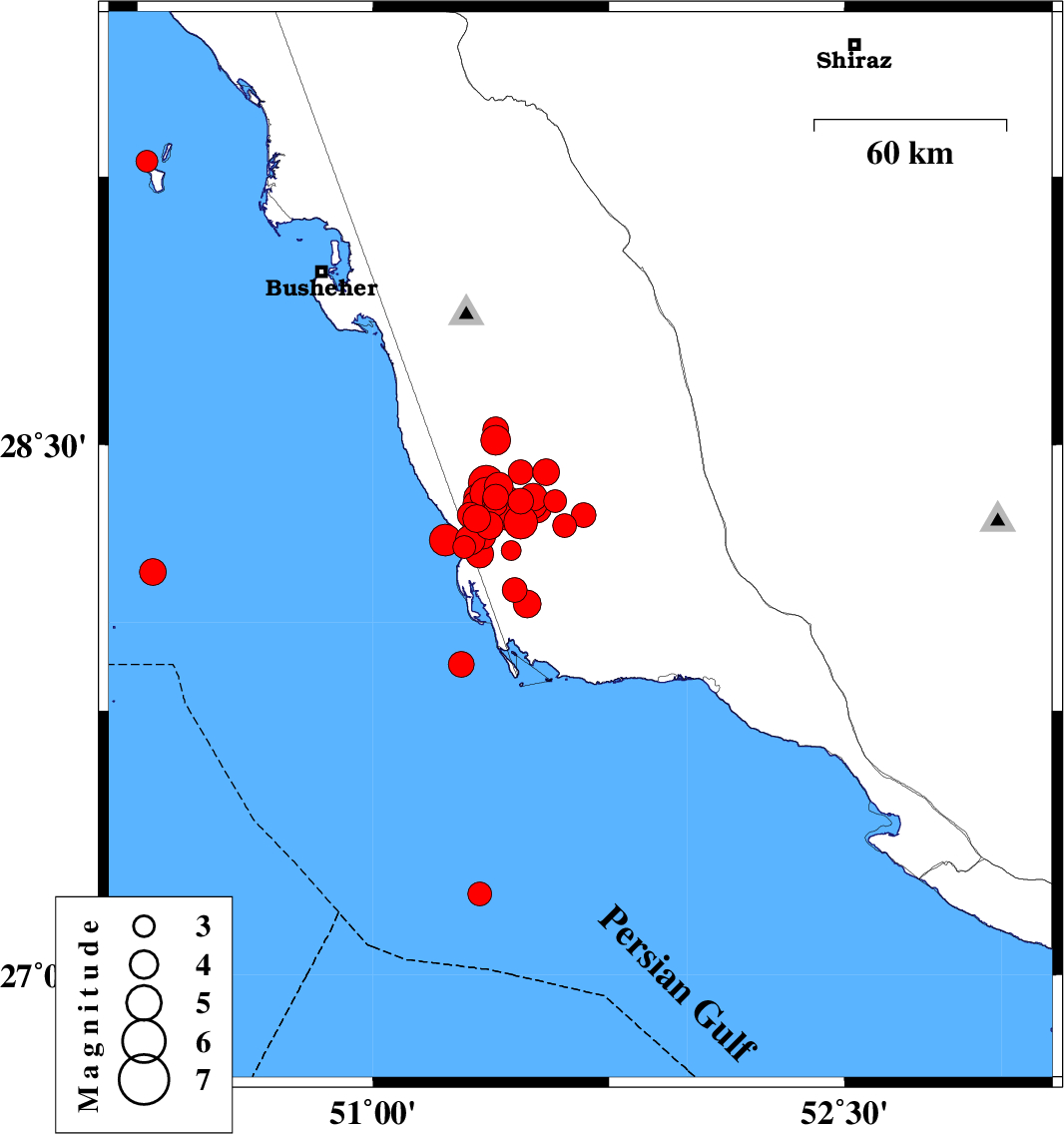 2013/04/09 12:31:37.6 17:01:37.6 28.5151.514 ML:3.7 Bushehr Province, 20 km South-East of Khormog