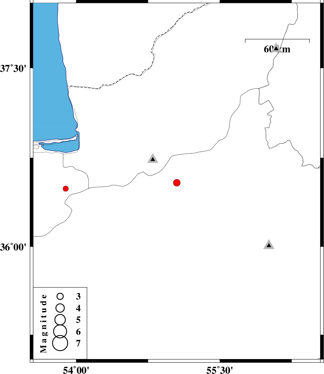 | 2013/05/09 | 21:10:06.3 | 01:40:06.3 | 36.54 | 55.05 | 14 | ML:3.2 | Semnan Province, 15 km North of Shahrud | ||