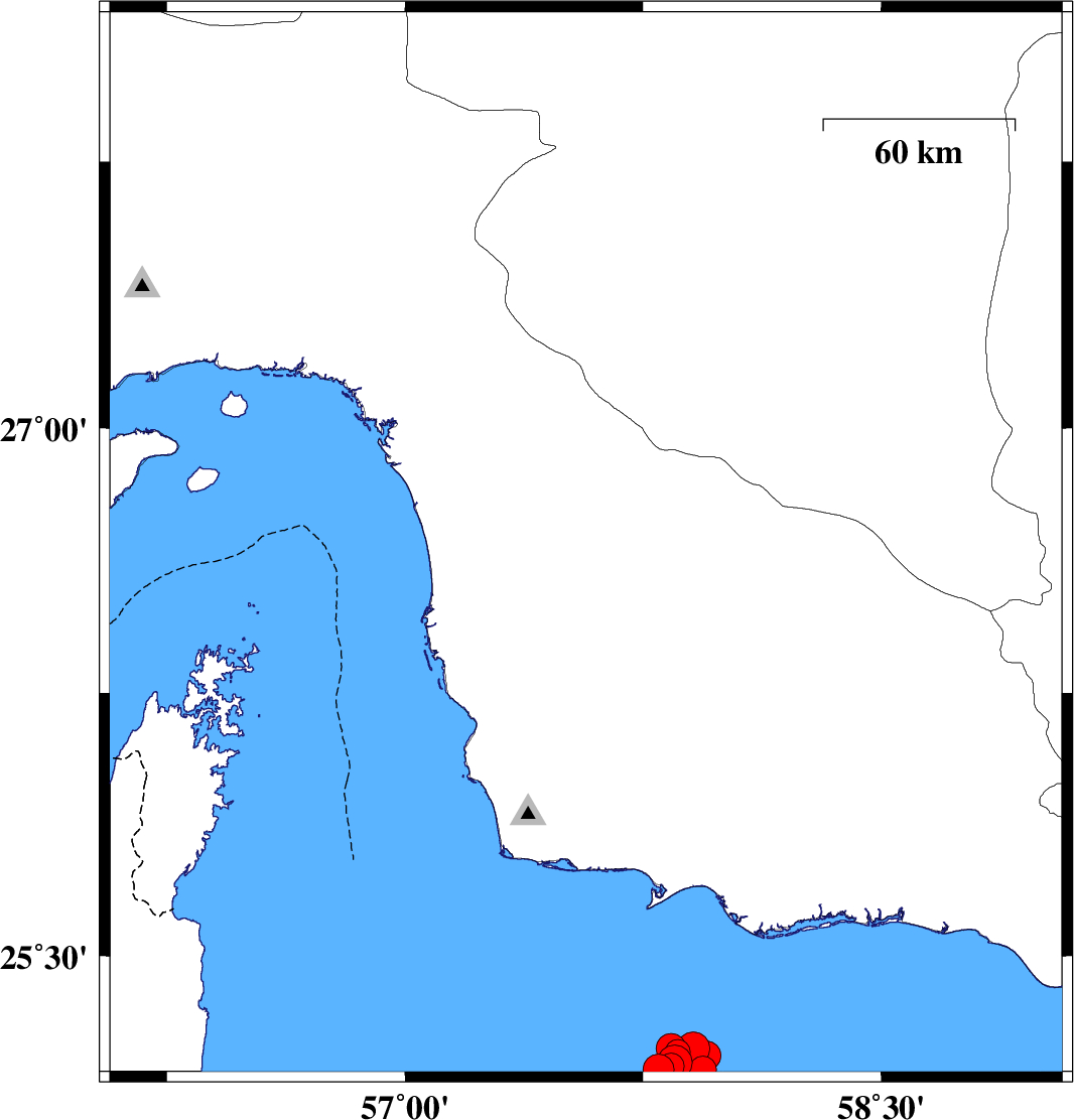 2013/05/11 10:42:22.8 15:12:22.8 26.6557.5315 ML:3.7 Hormozgan Province, 85 km South of Manujan