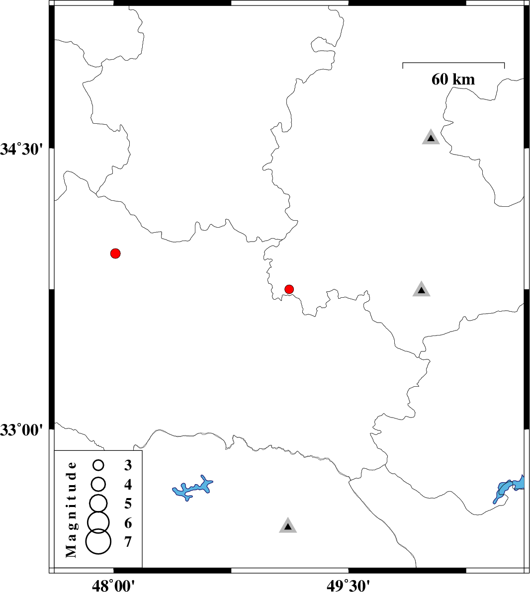 | 2013/05/05 | 07:58:28.8 | 12:28:28.8 | 33.94 | 48.01 | 14 | ML:2.8 | Lorestan Province, 15 km South of Nurabad |