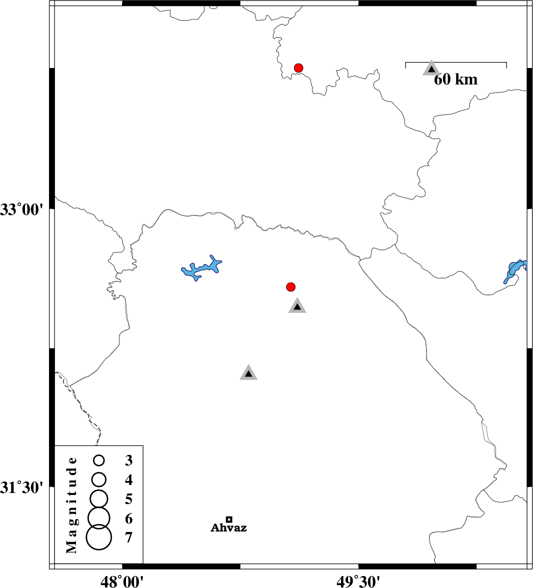 | 2013/05/13 | 15:49:50.6 | 20:19:50.6 | 32.58 | 49.07 | 14 | ML:2.5 | Khoozestan Province, 21 km North of Lali | ||