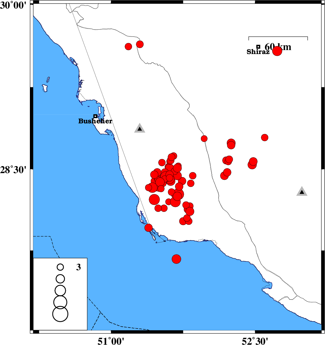Bushehr Province, 44 km North-West of Bandar-e kangan | |