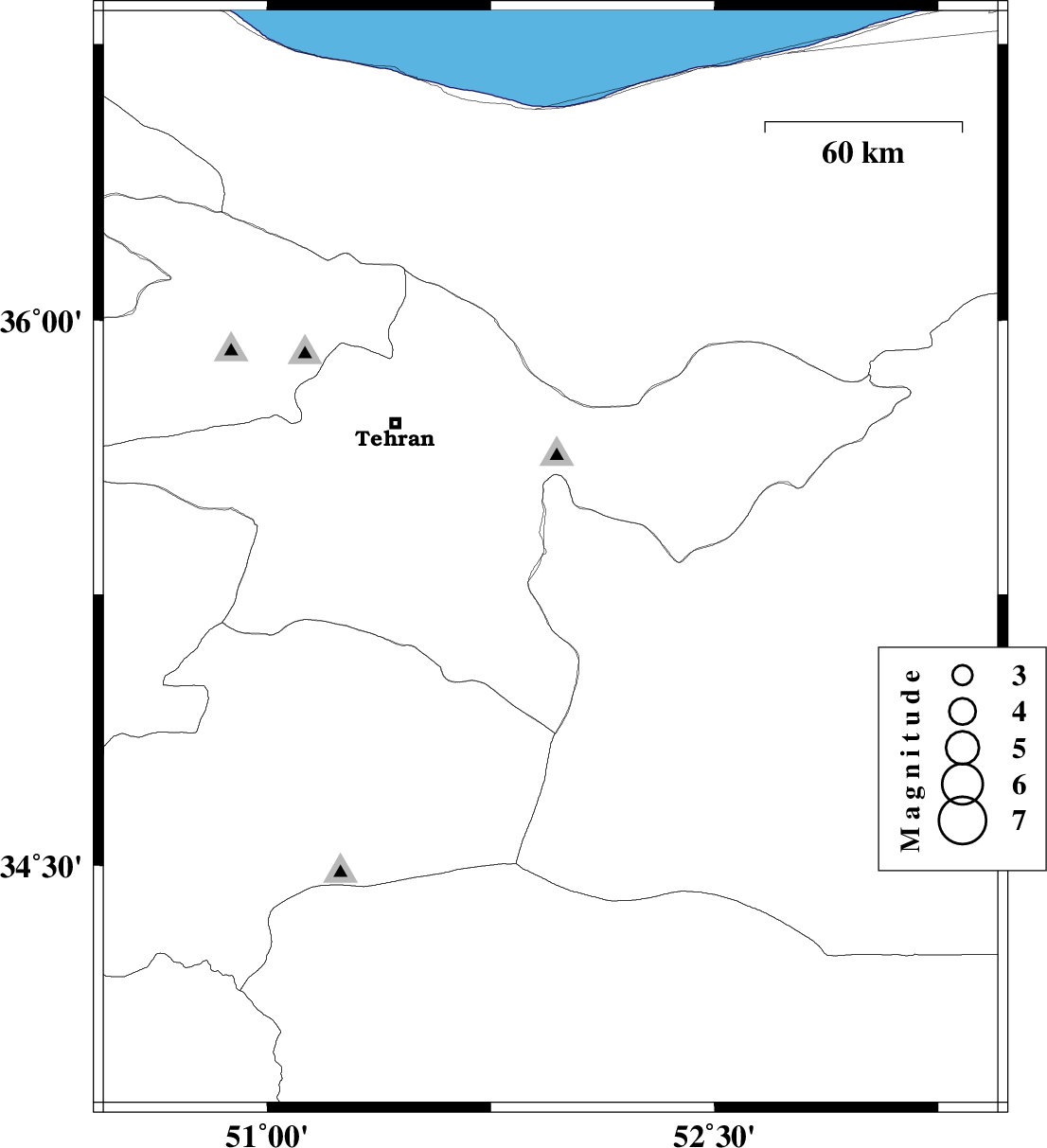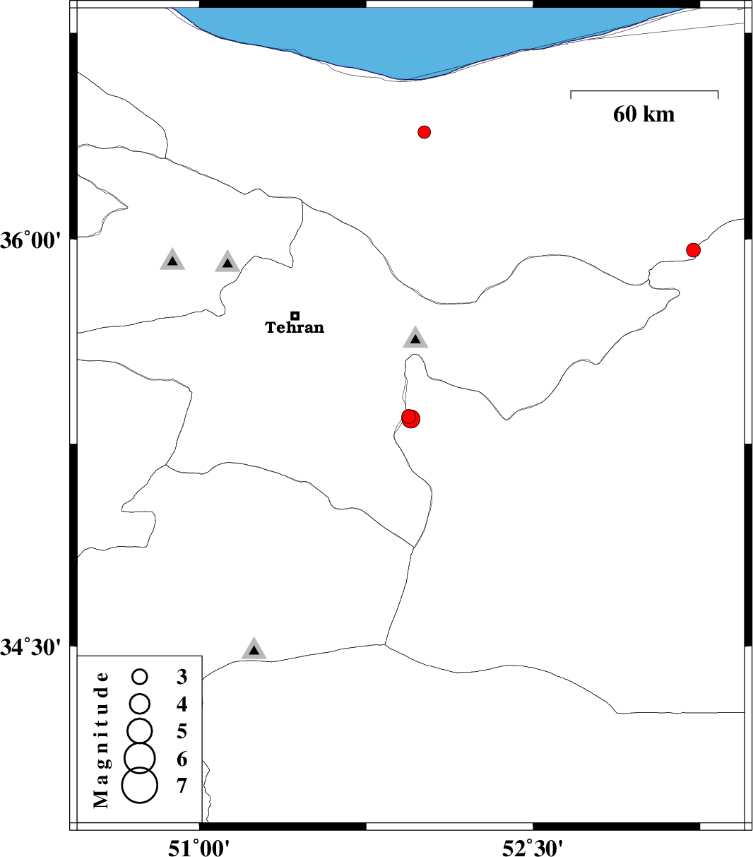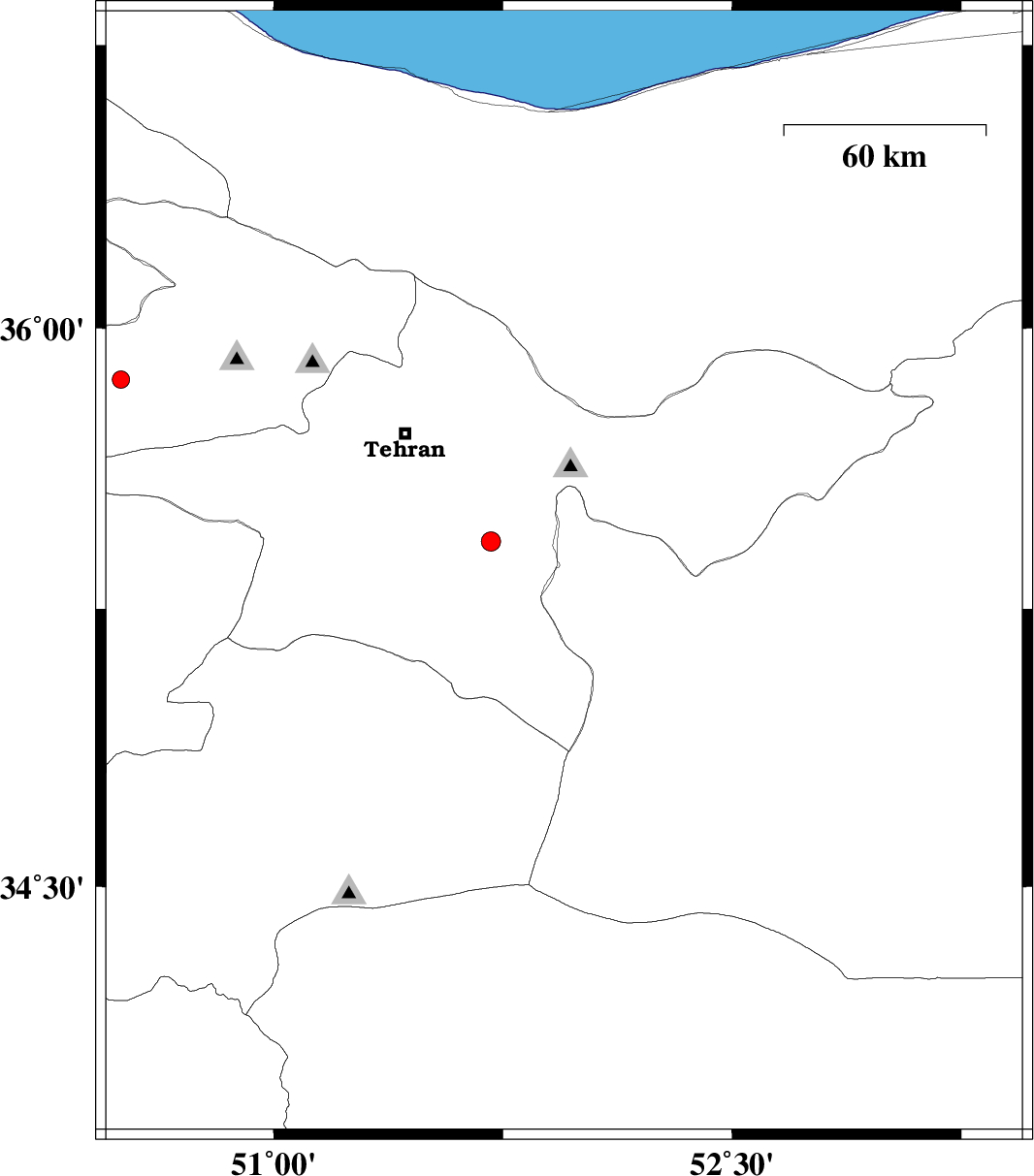 | 2013/05/12 | 07:19:30.9 | 11:49:30.9 | 36.39 | 52.01 | 14 | ML:2.6 | Mazandaran Province, 20 km South of Nur |