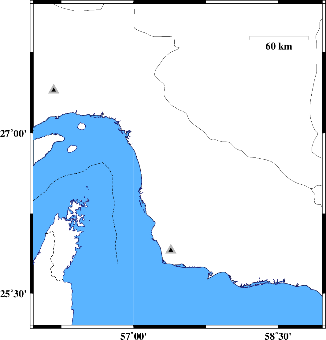 2013/05/14 10:02:36.7 14:32:36.7 26.5157.614 ML:4 Hormozgan Province, 100 km South-East of Manujan