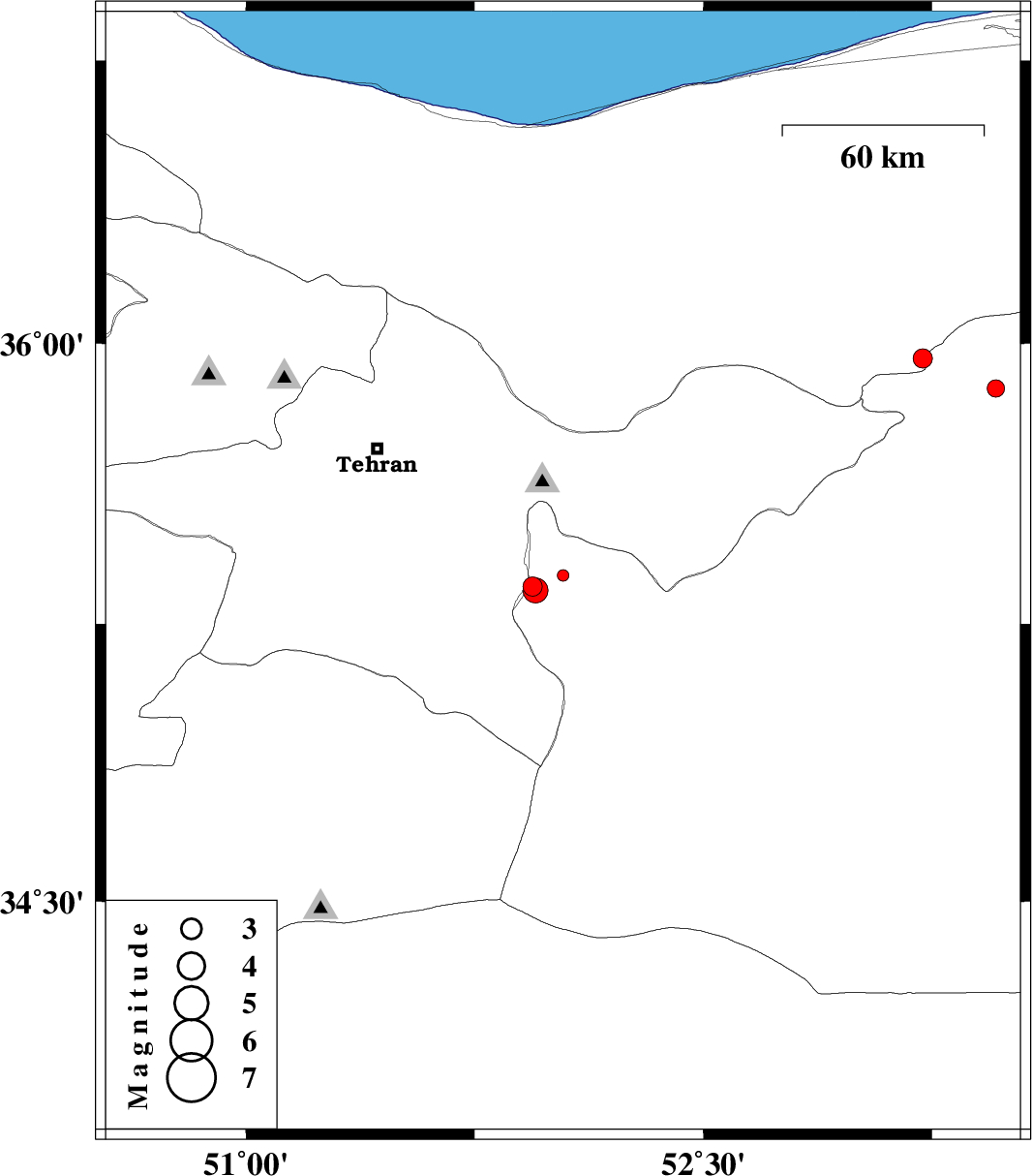 | 2013/05/14 | 06:43:02.1 | 11:13:02.1 | 35.88 | 53.46 | 15 | ML:2.6 | Semnan Province, 35 km North of Semnan |