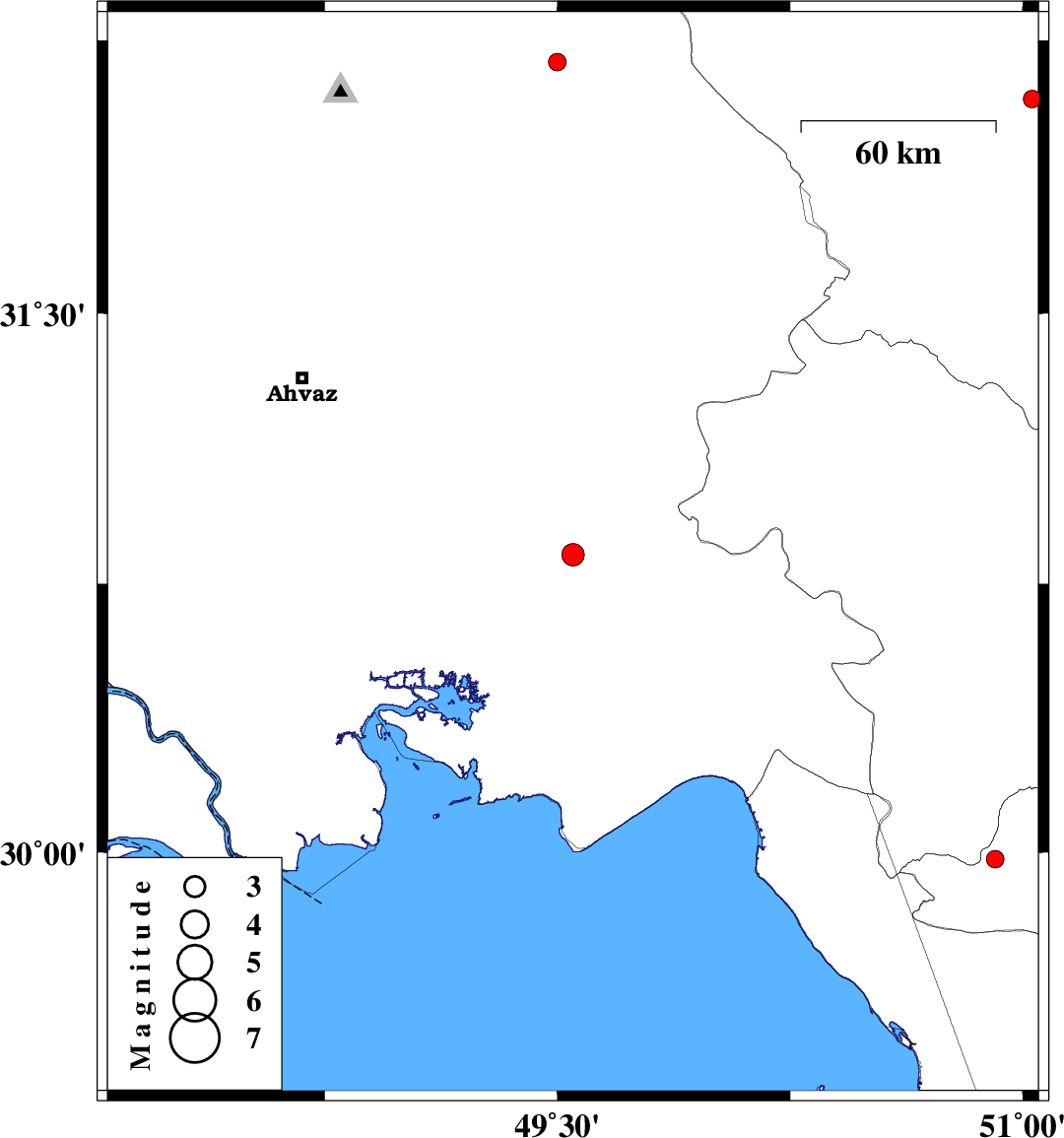 | 2013/05/21 | 17:24:02.4 | 21:54:02.4 | 30.83 | 49.55 | 18 | ML:3.2 | Khoozestan Province, 17 km West of Omidiyeh | ||