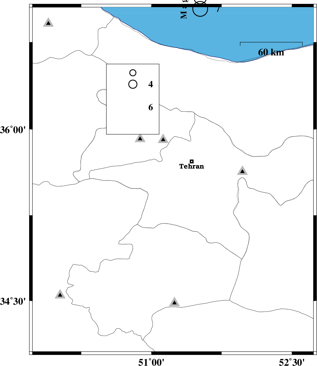 2013/05/24 | 01:59:52.5 | 06:29:52.5 | 35.36 | 52.08 | 24 | ML:1.9 | Semnan Province, 39 km South of Damavand | ||