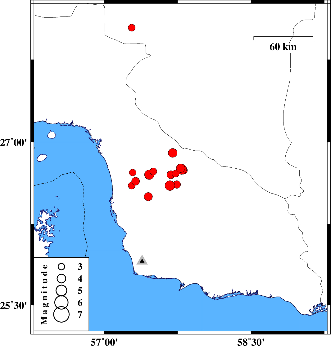 2013/05/19 05:41:18.3 10:11:18.3 26.7457.8115 ML:3.5 Hormozgan Province, 80 km South-East of Manujan
