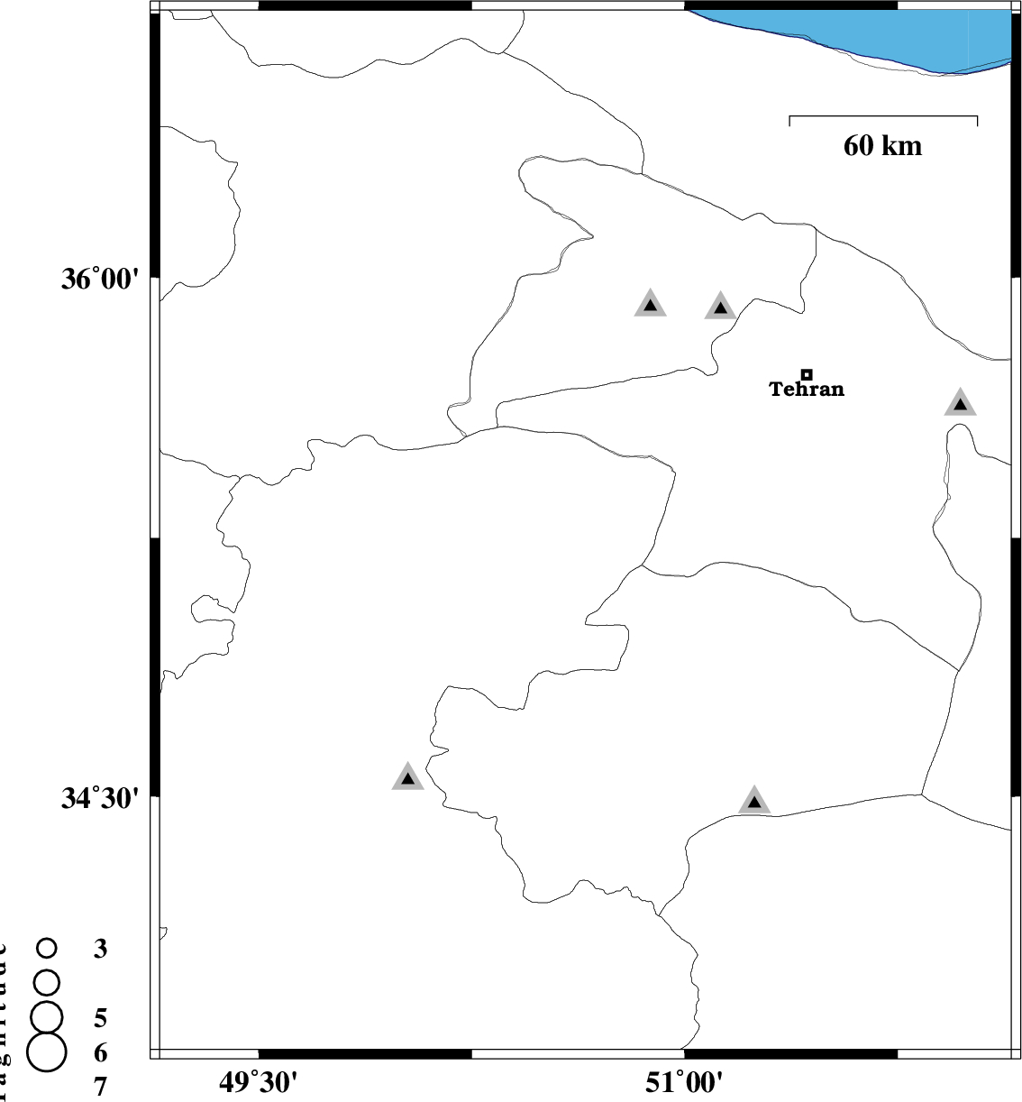 2013/05/02 | 10:47:36.5 | 15:17:36.5 | 35.6 | 50.22 | 36 | ML:1.8 | Tehran Province, 23 km South-East of Buinzara | ||