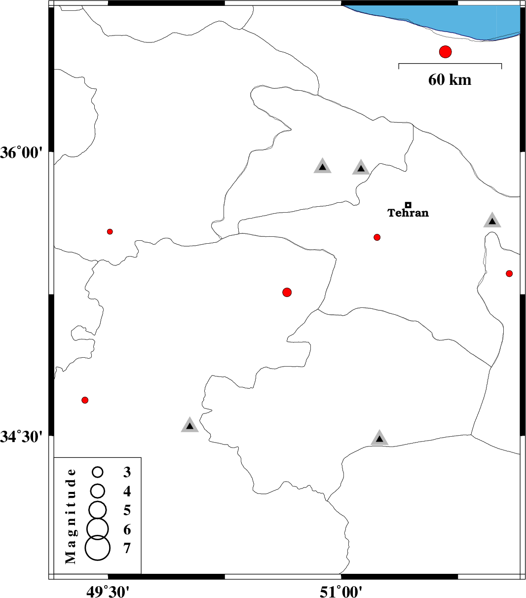 | 2013/05/22 | 10:36:26.1 | 15:06:26.1 | 34.69 | 49.35 | 6 | ML:1.9 | Markazi Province, 61 km West of Tafresh |