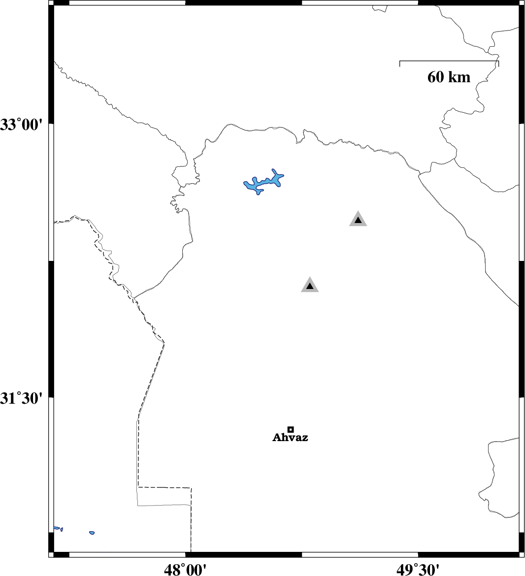| 2013/05/28 | 15:39:00.3 | 20:09:00.3 | 32 | 48.84 | 15 | ML:2.6 | Khoozestan Province, 5 km Shushtar | ||