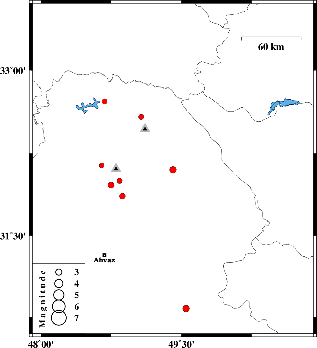 | 2013/05/28 | 15:39:00.3 | 20:09:00.3 | 32 | 48.84 | 15 | ML:2.6 | Khoozestan Province, 5 km Shushtar | ||