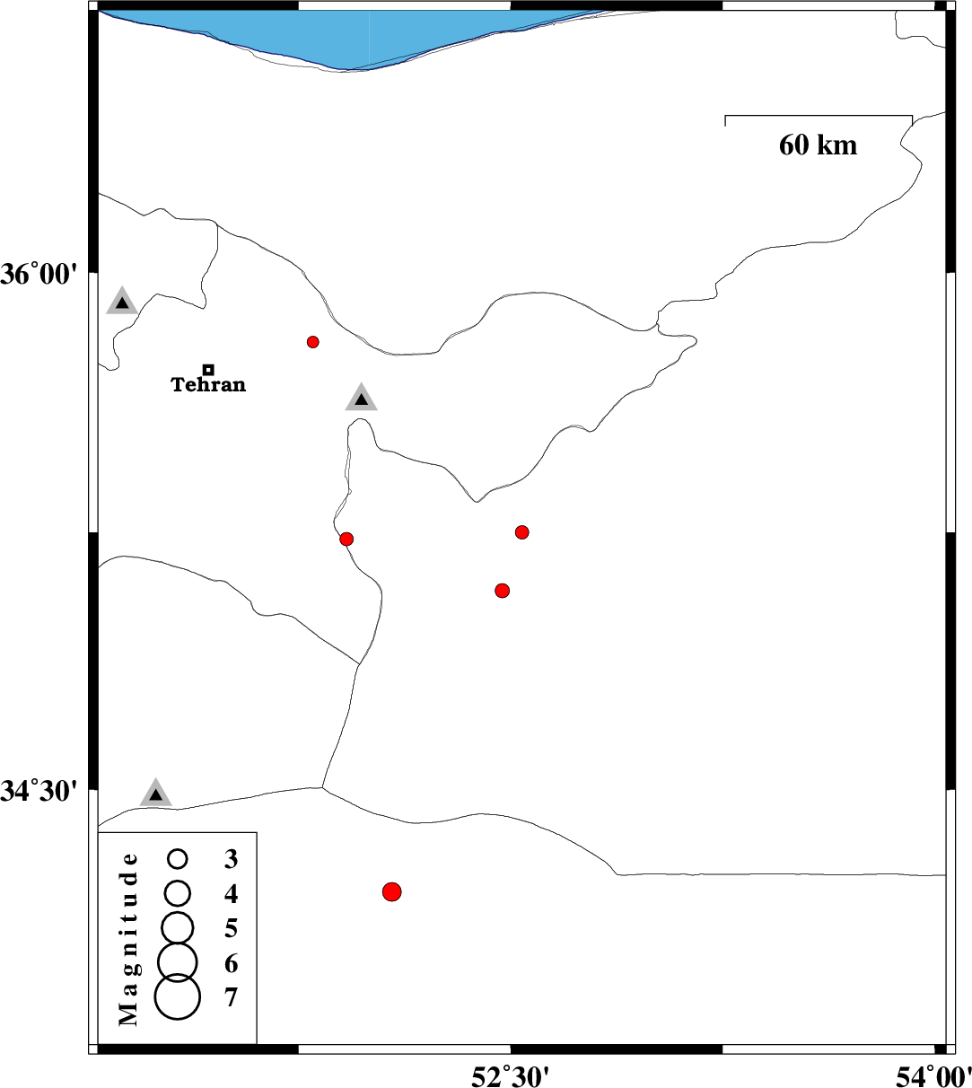 | 2013/06/04 | 22:24:09.8 | 02:54:09.8 | 35.8 | 51.8 | 14 | ML:1.8 | Tehran Province, 26 km West of Damavand | ||
